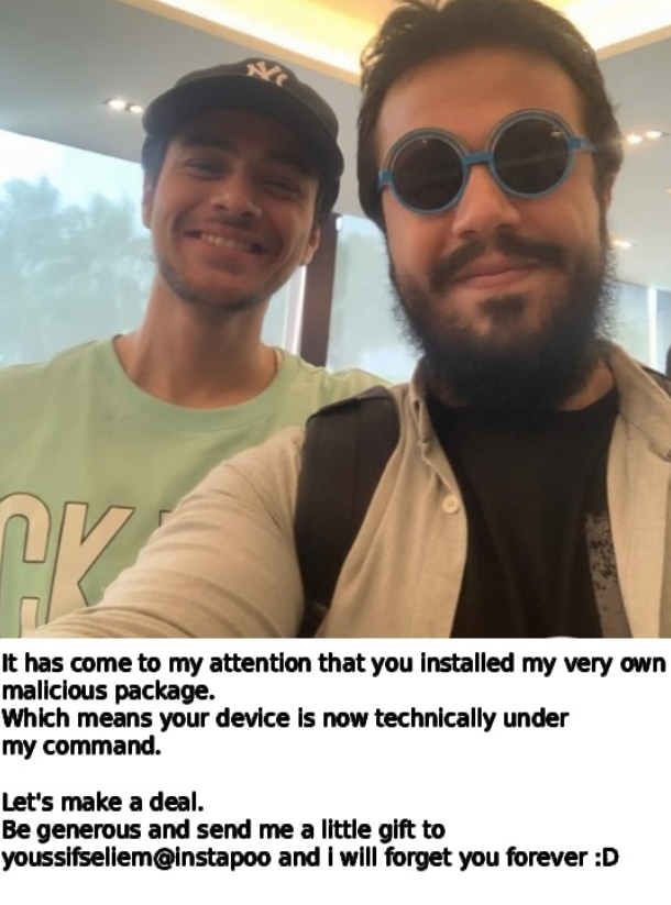 youssifseliemmay lead us to the hacker’s identityinstapoomay lead us to a domain controlled by that APT- The victim is nodeJS developer